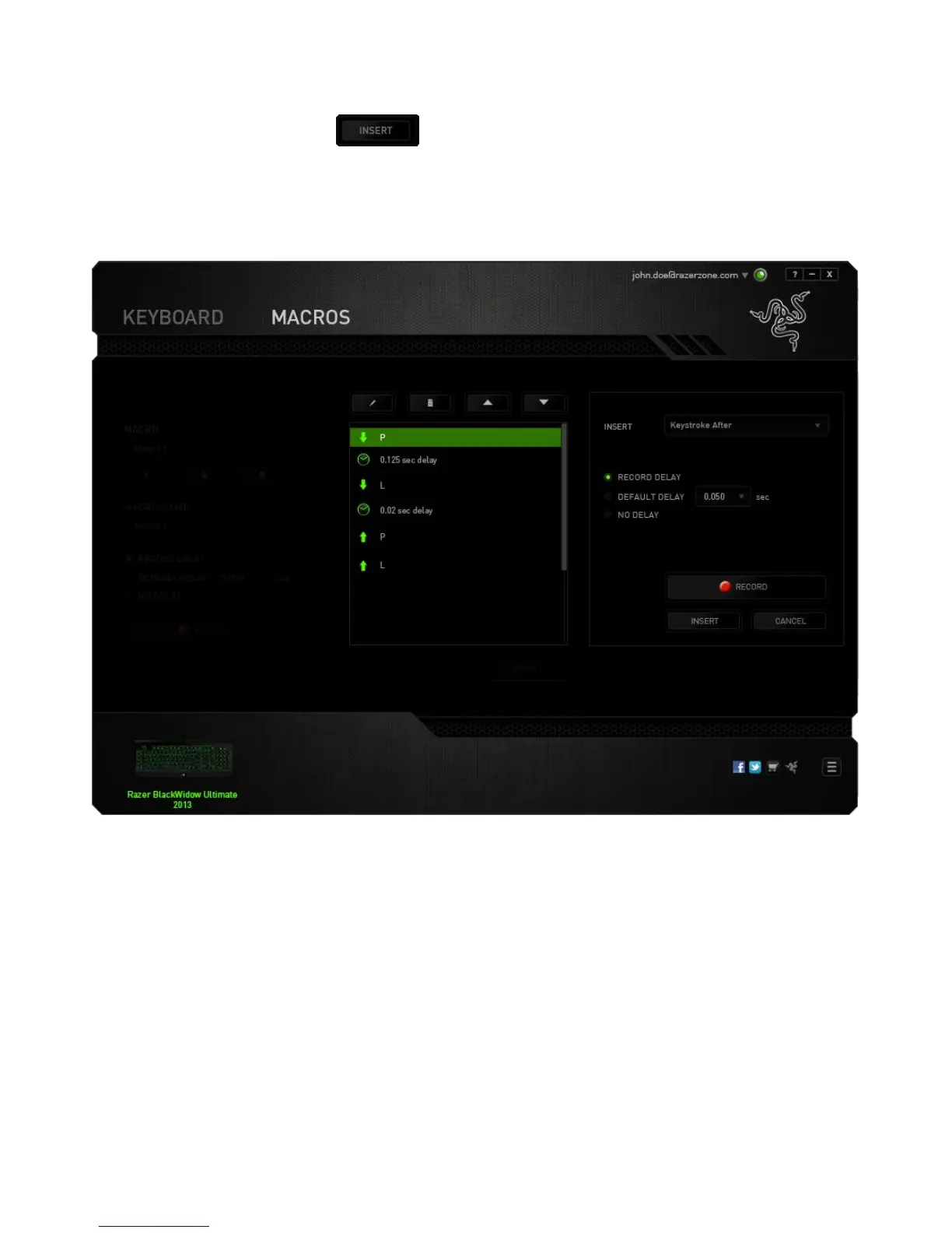 choose a keystroke or a delay to be added in before or after the highlighted macro