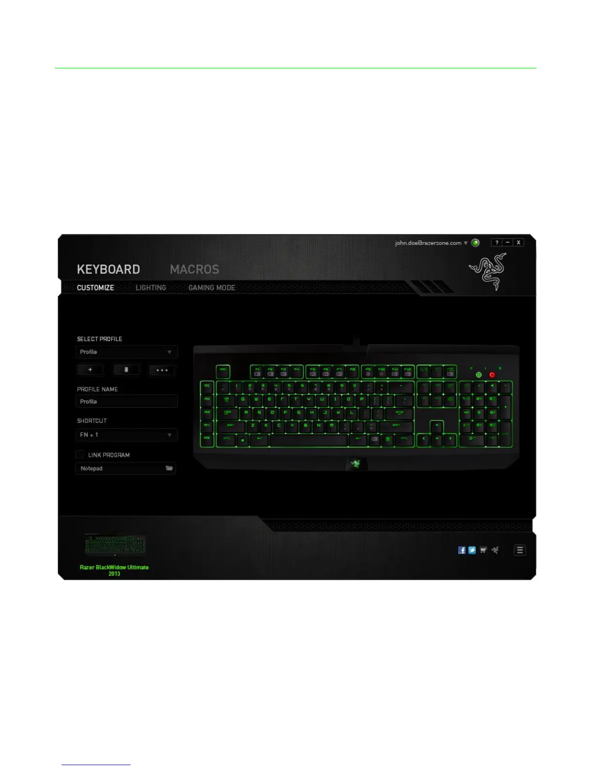 The Keyboard Tab is your default tab when you first install Razer Synapse 2.0. This tab