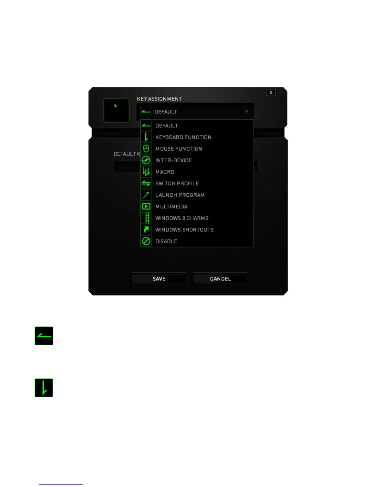 by clicking the desired key to access the Key Assignment Menu.