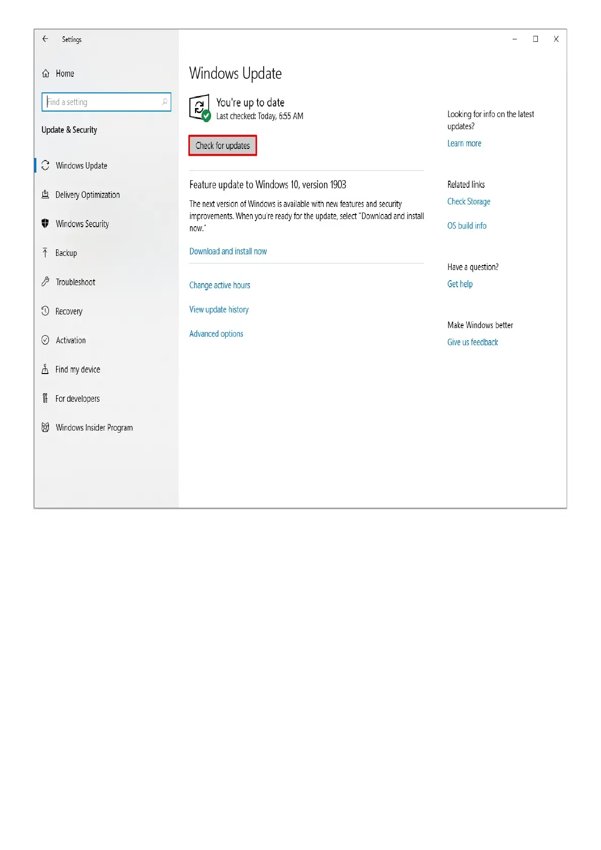 Simply navigate to Settings > Update & Security > Windows Update and select “Check for updates” to