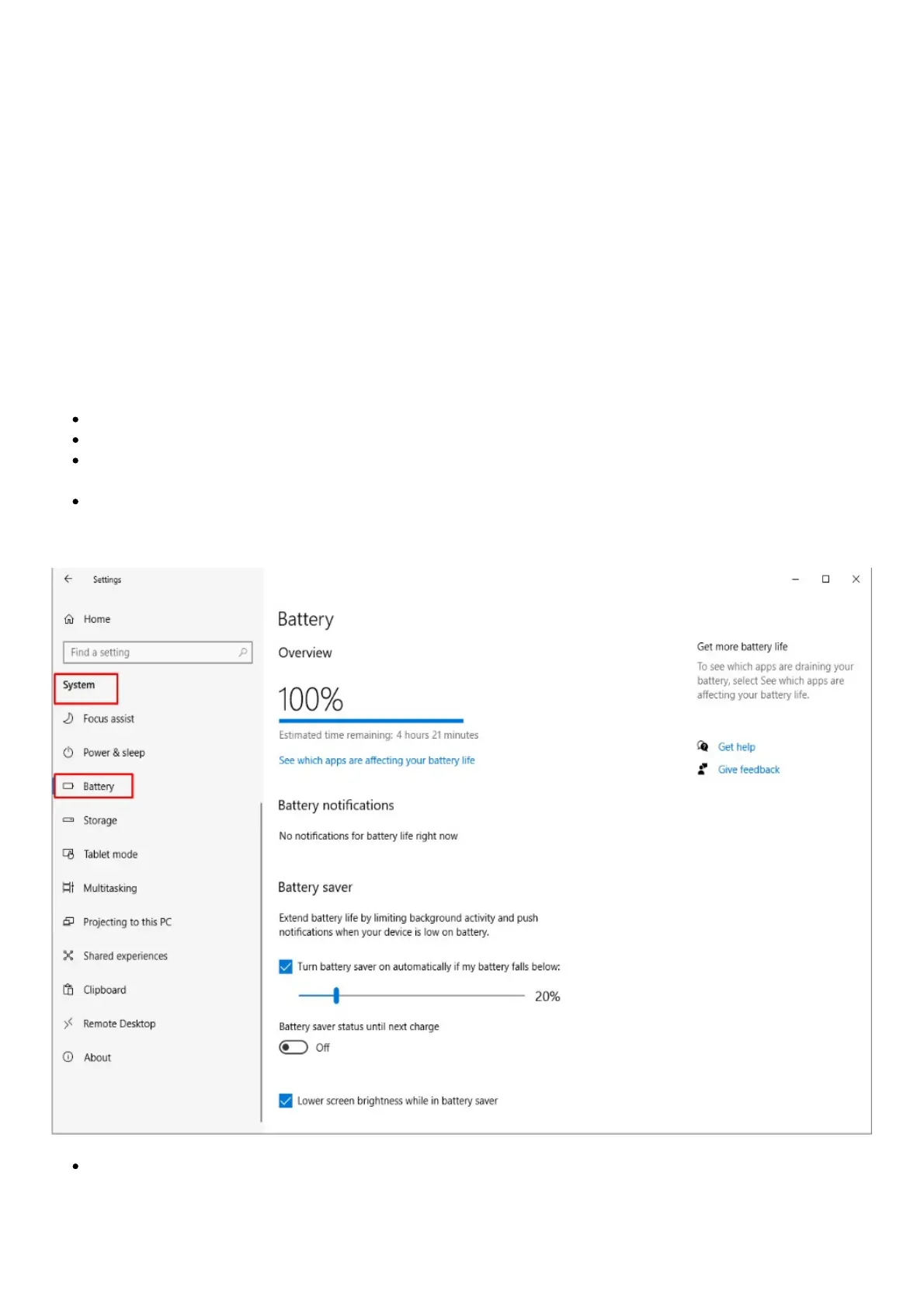 Most of the battery improvement options are part of the Windows OS. Follow the following tips below