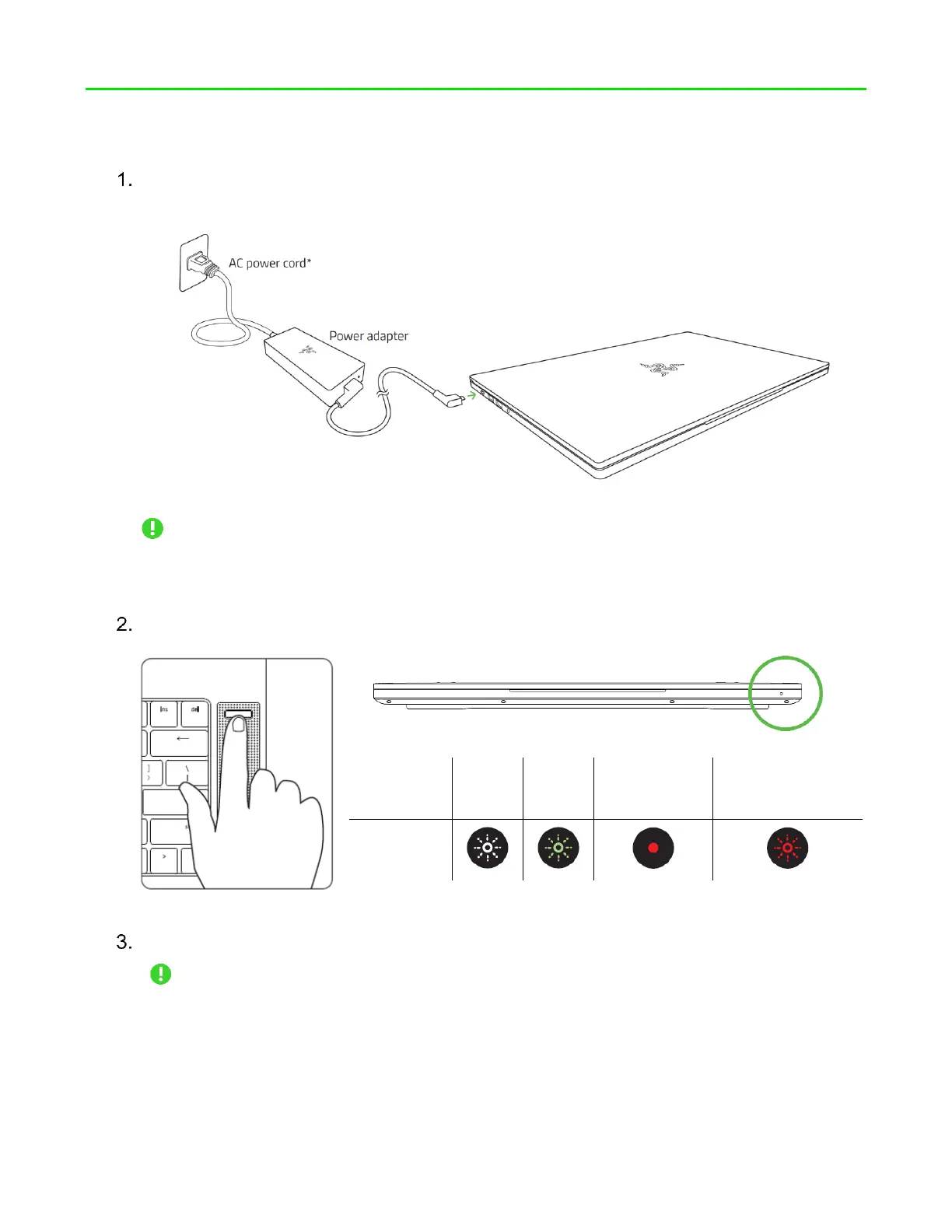 Power on your Razer Blade 15. The power indicator will show the status of your laptop.