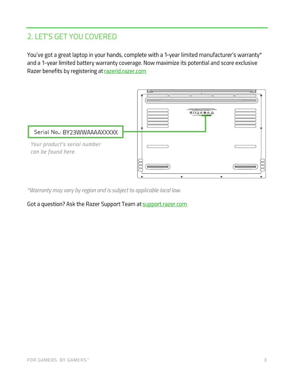 You've got a great laptop in your hands, complete with a I-year limited manufacturer's warranty*