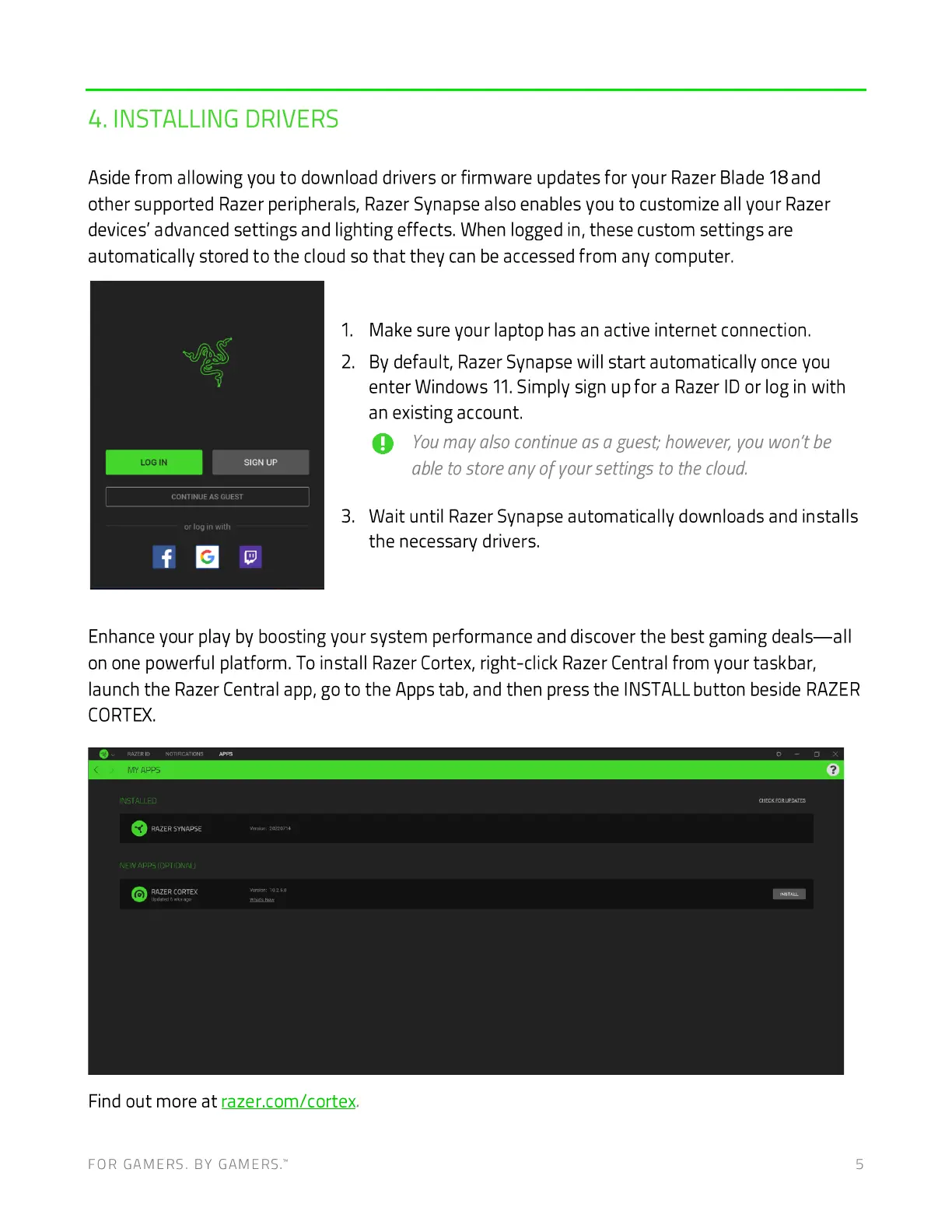 launch the Razer Central app, go to the Apps tab, and then press the INSTALL button beside RAZER