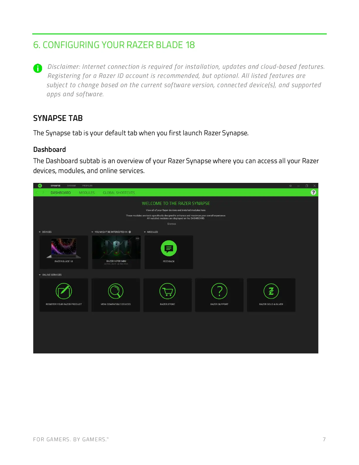 The Synapse tab is your default tab when you first launch Razer Synapse.