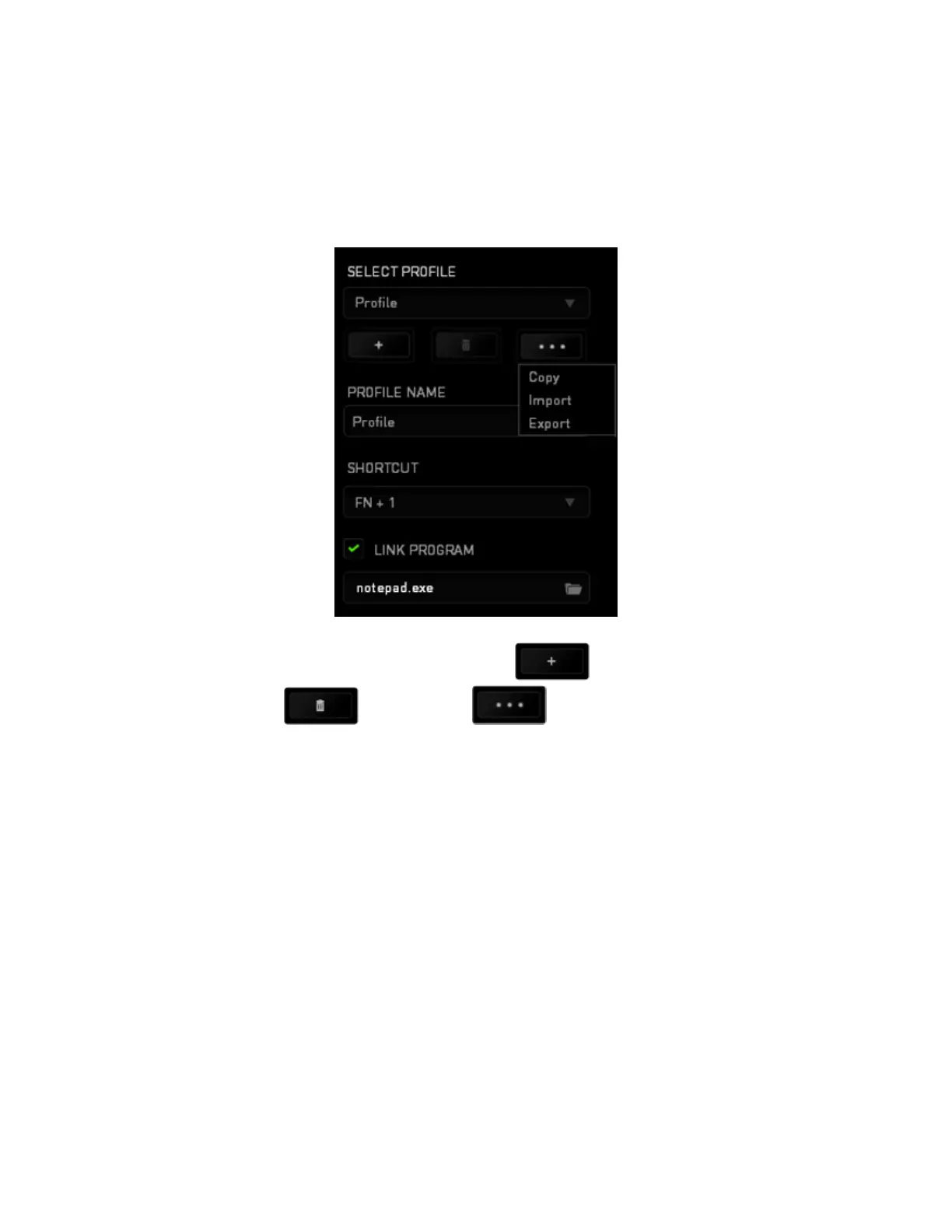 Each profile can be set to FN + 0 - 9 using the SHORTCUT dropdown menu for fast