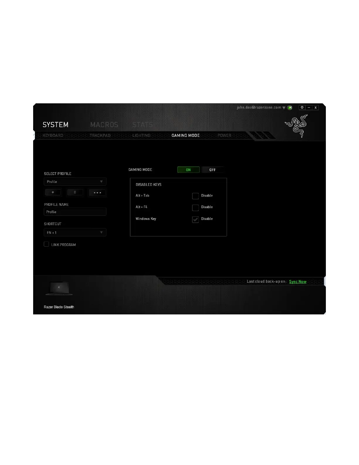 The Gaming Mode Tab helps you prevent accidental key presses. Depending on your