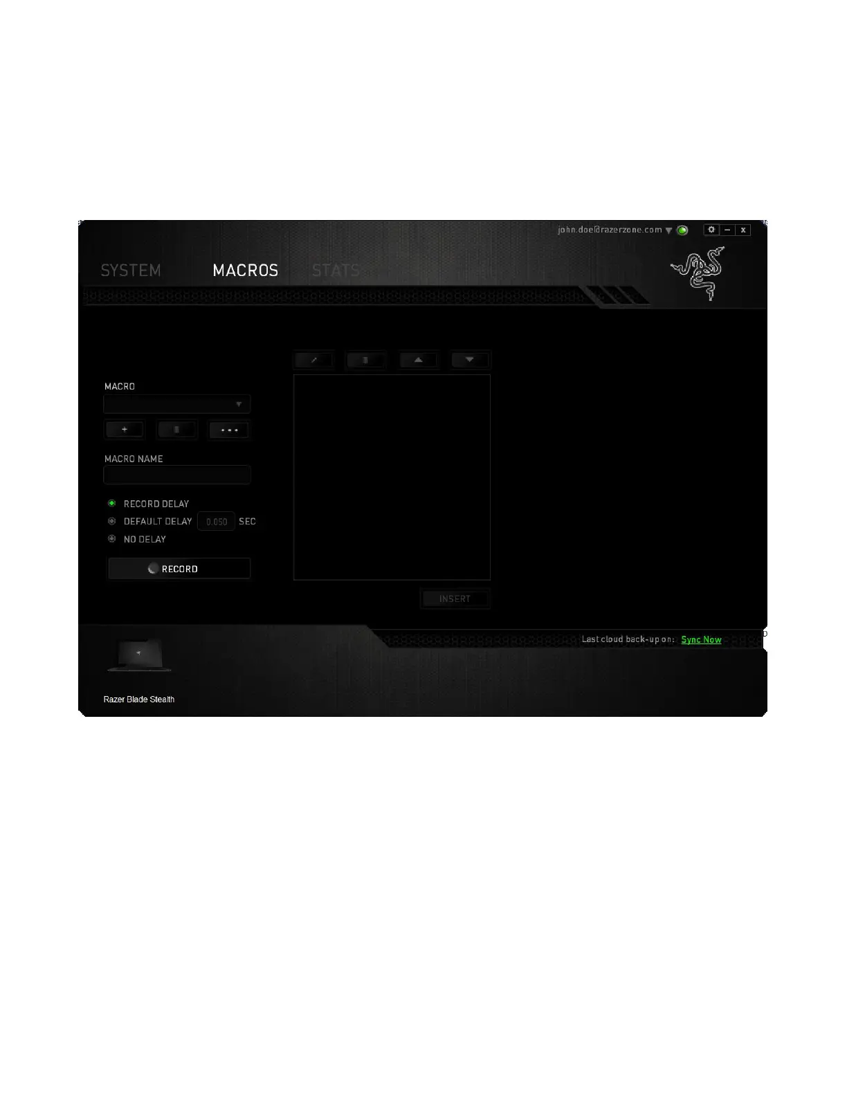 The Macro section allows you to input the delay in-between commands. In RECORD