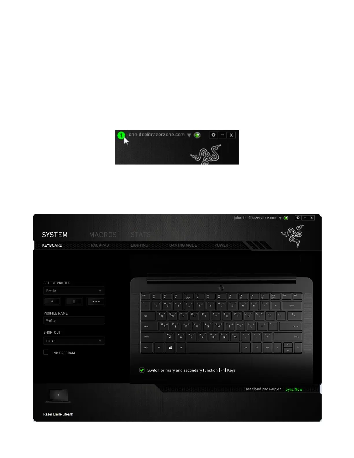 notification icon next to your user name in the Razer Synapse window and select