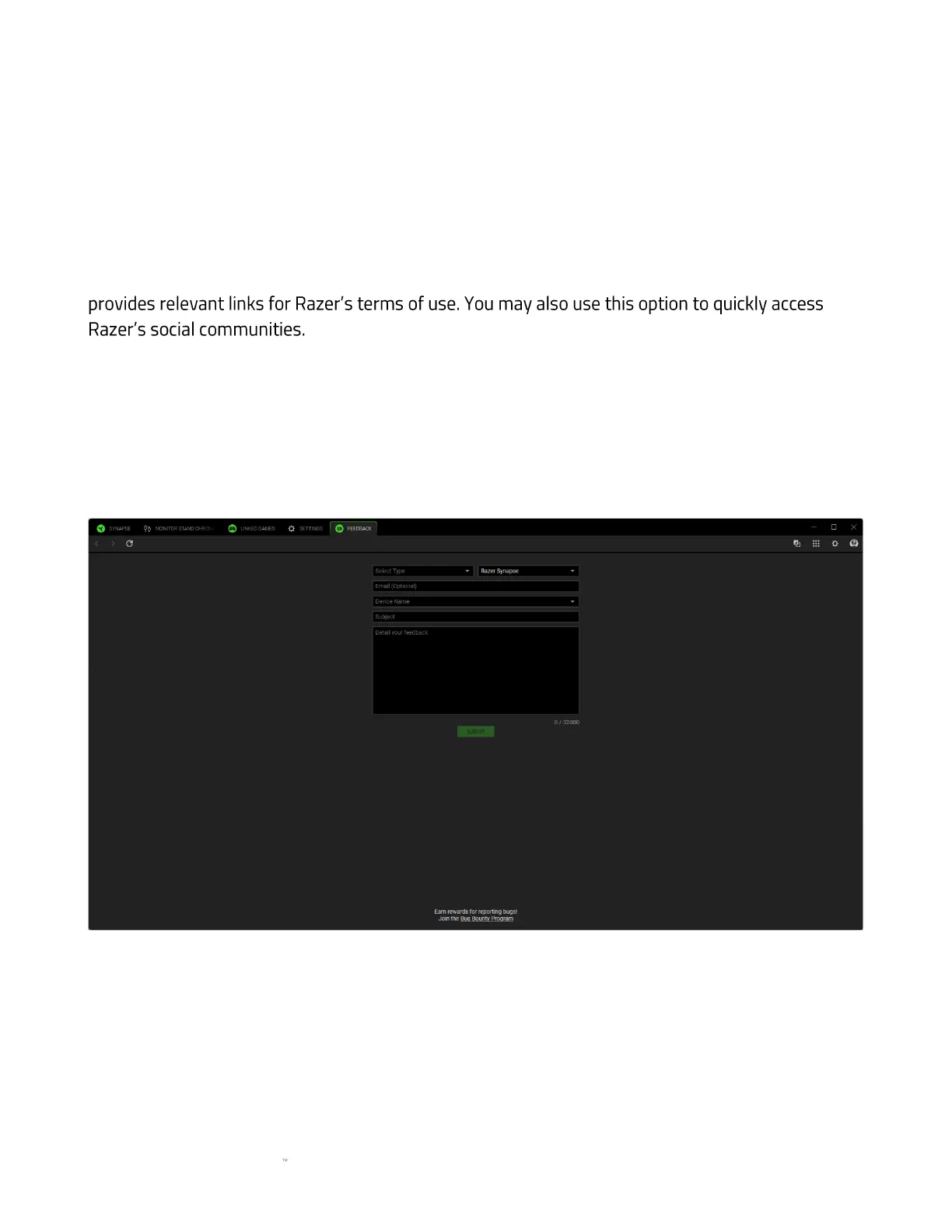Help us improve Razer Synapse by giving your comments, suggestions, and problems with the