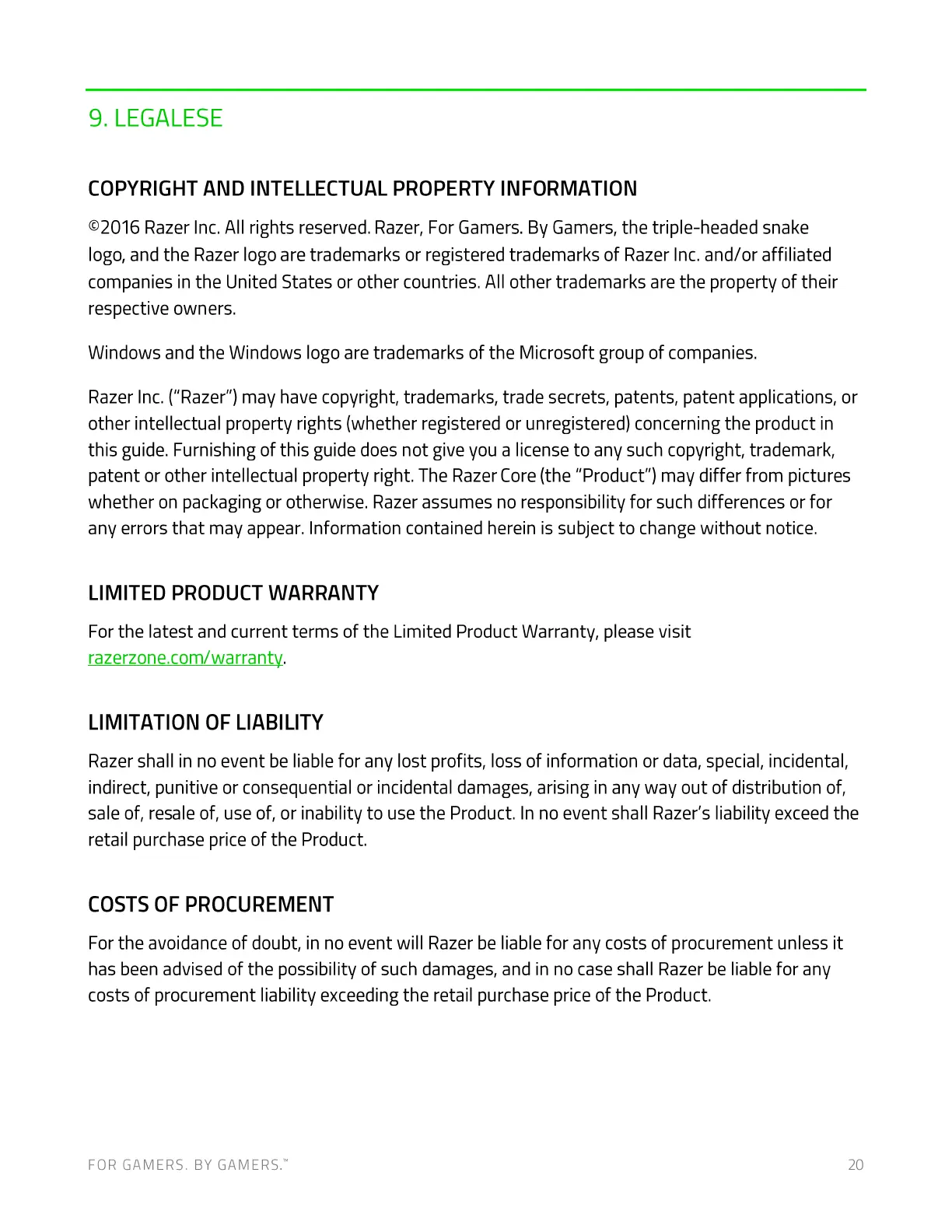 patent or other intellectual property right. The Razer Core (the "Product") may differ from pictures
