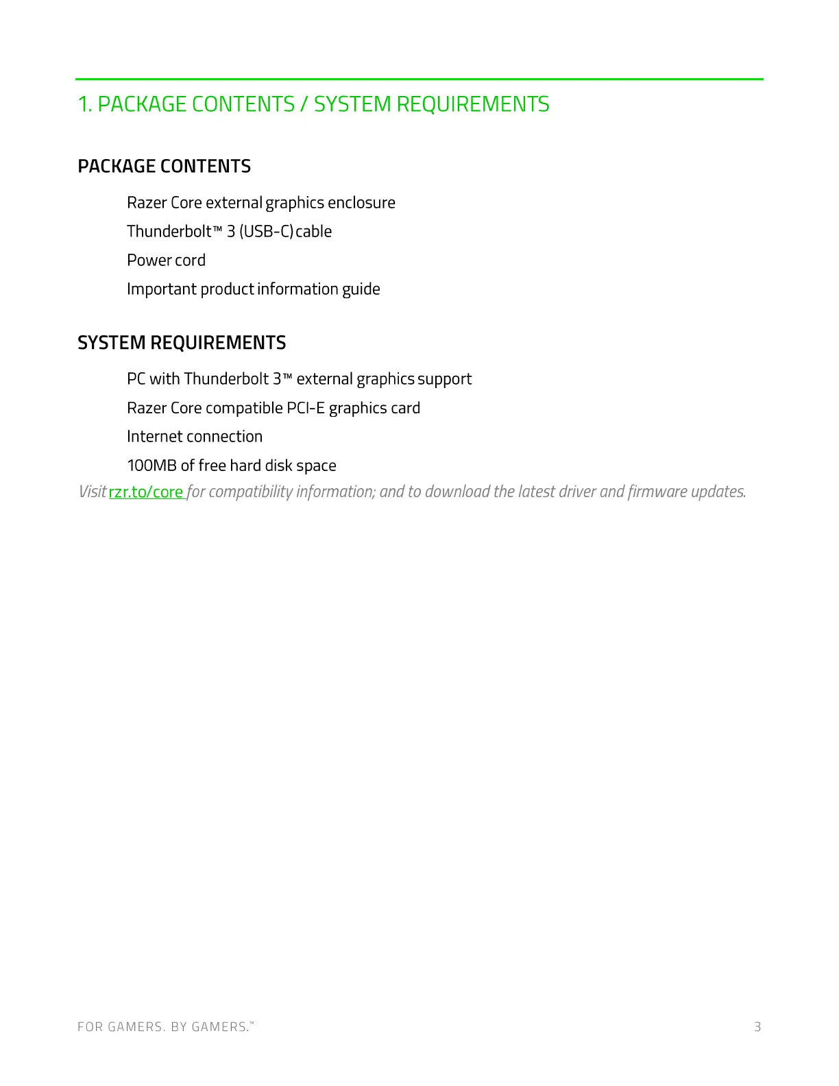 Visitrzr.to/core for compatibility information; and to download the latest driver and firmware updates.