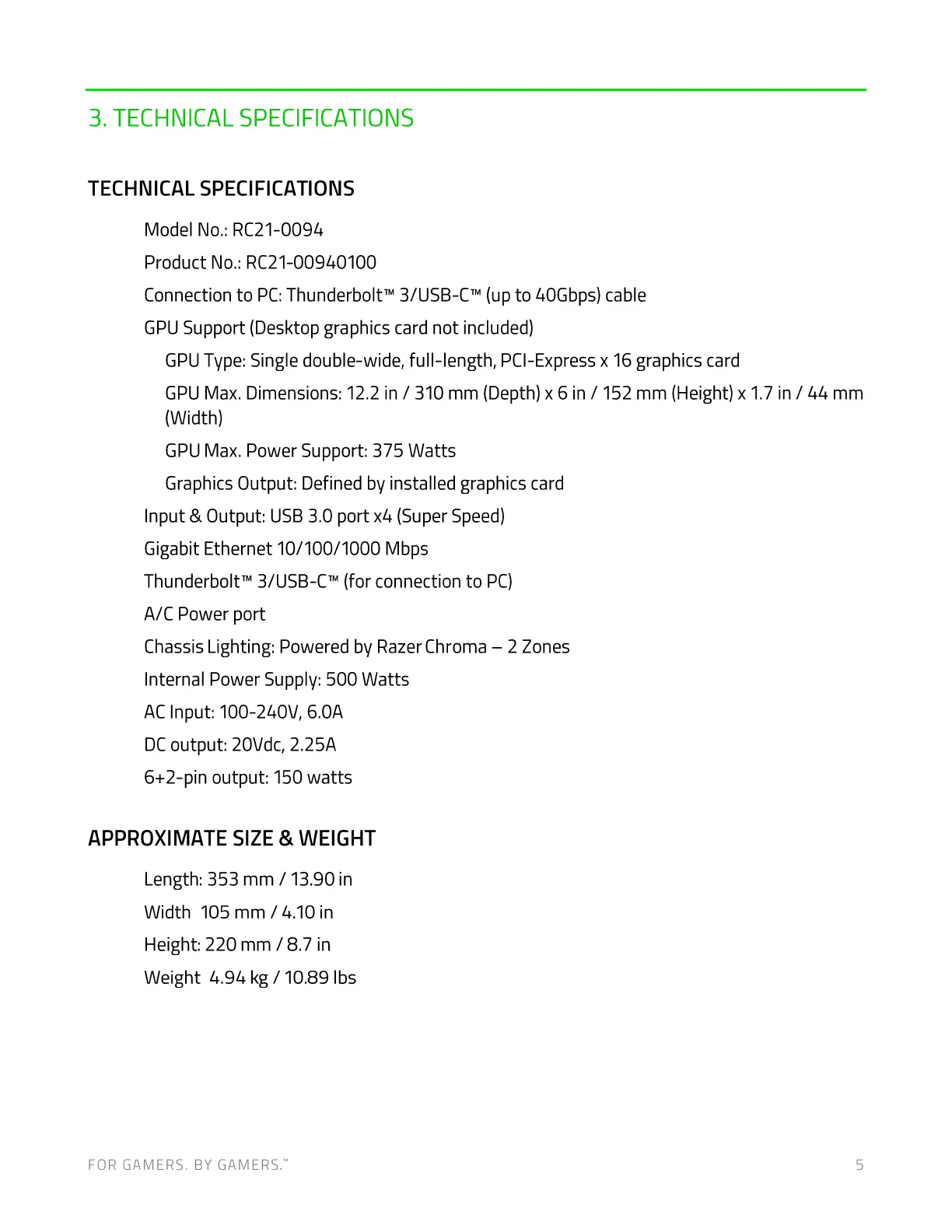 3. TECHNICAL SPECIFICATIONS