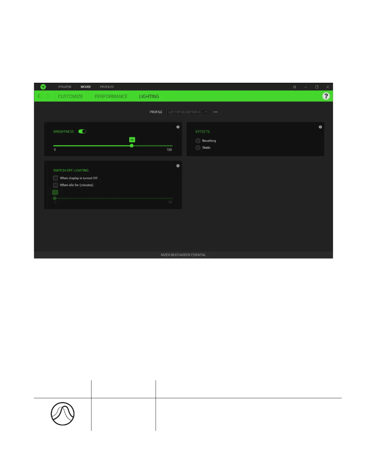 The Lighting subtab enables you to modify your Razer device’s light settings.