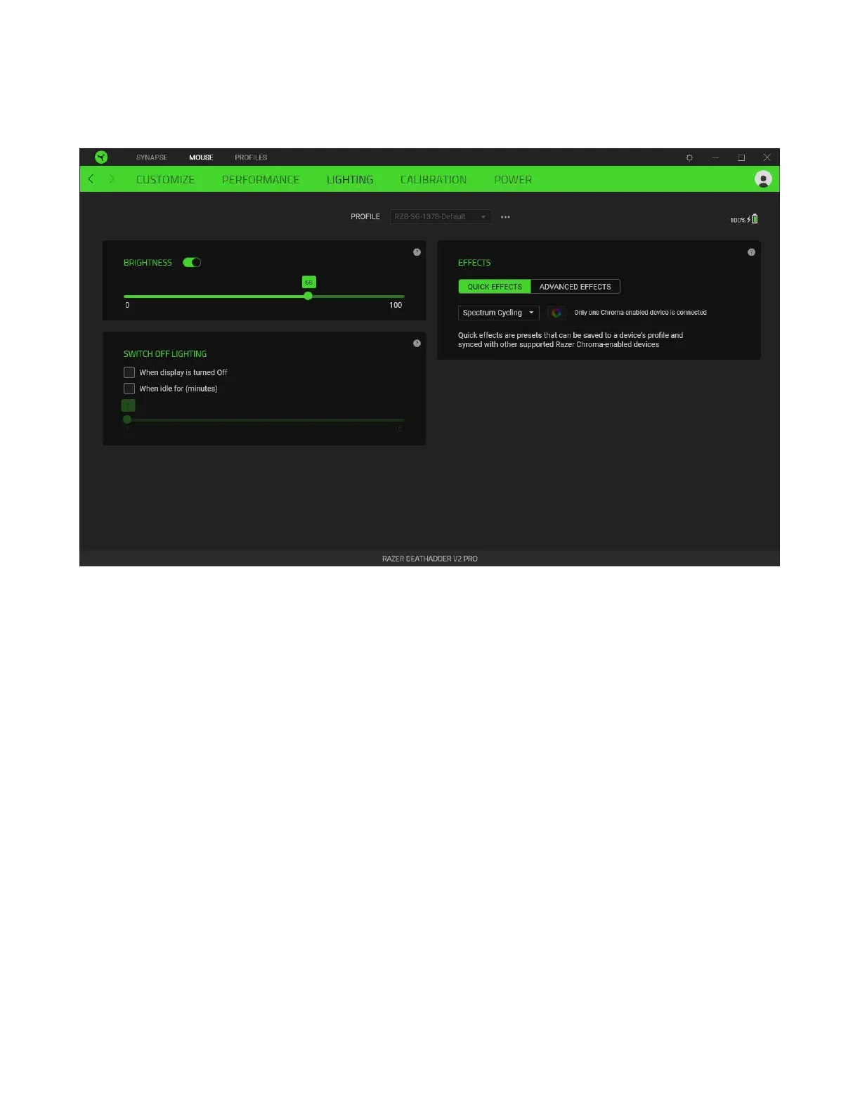 The Lighting subtab enables you to modify your Razer device’s light settings.