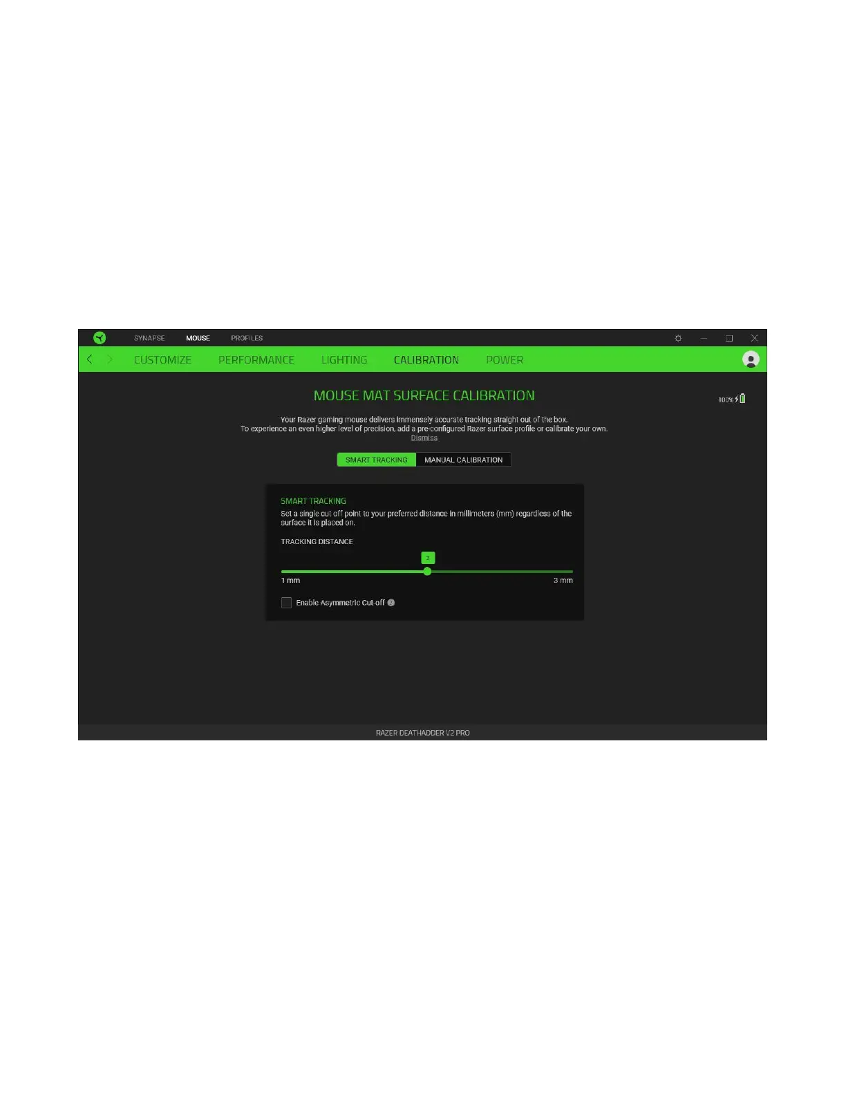 The Calibration subtab allows you to optimize your Razer Precision Sensor to any surface for better