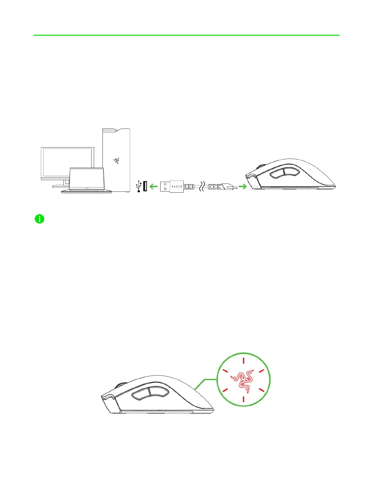 charged in approximately 4 hours. This connection also acts as the wired mode for your Razer device.
