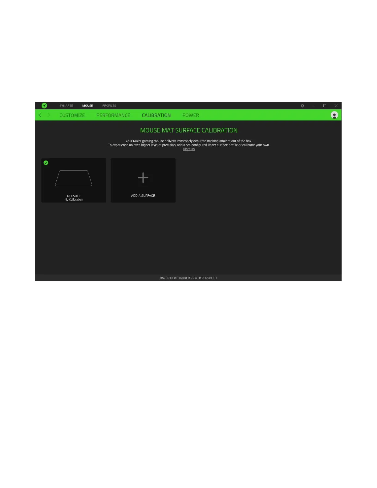 The Calibration subtab allows you to optimize your Razer Precision Sensor to any surface for