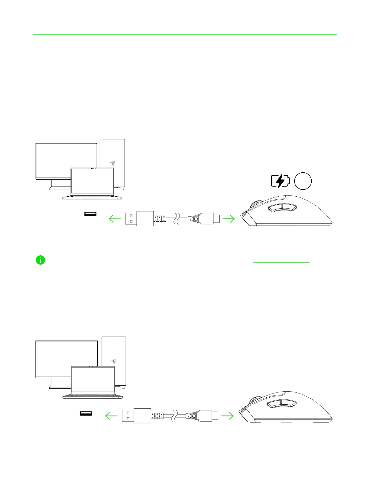 Plug the charging cable from your PC's USB port into the Razer DeathAdder V3 Pro. For best results,