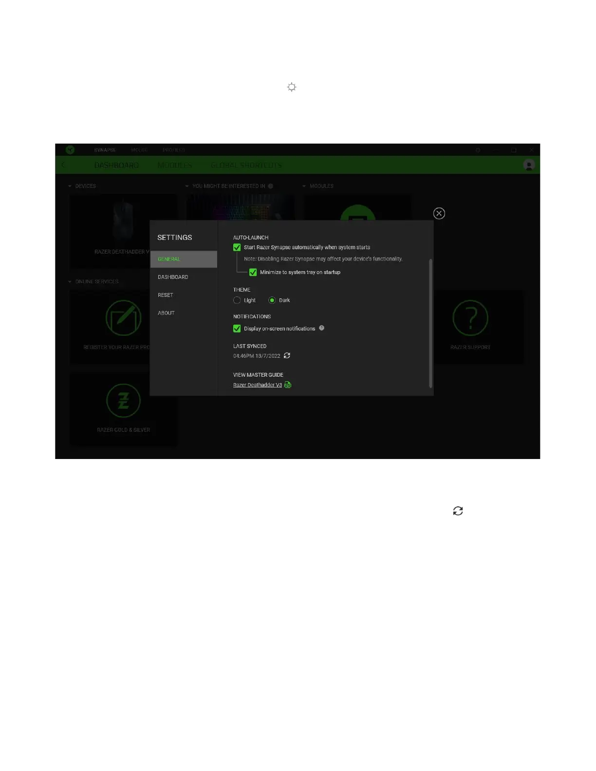 configure the startup behavior and display language of Razer Synapse, view the master guides of each