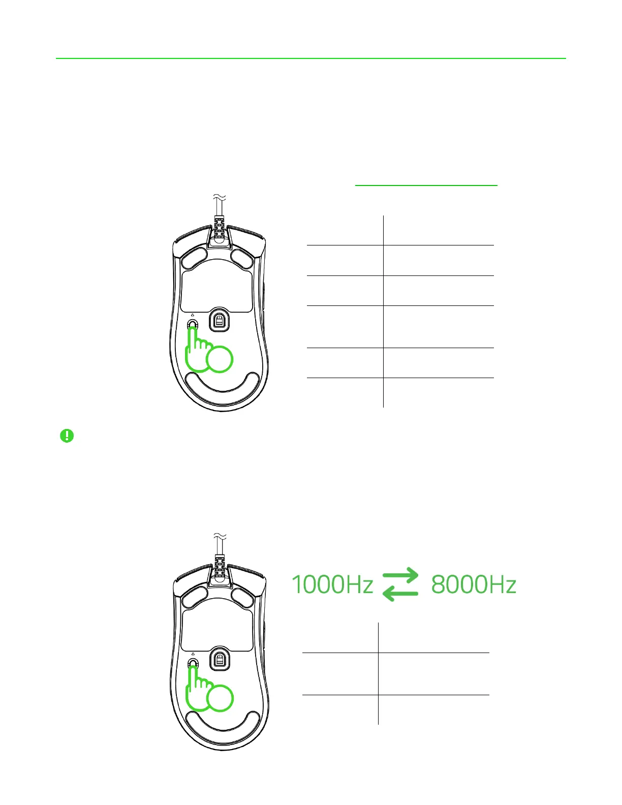 Press and hold the DPI cycle / Polling rate button for 5 seconds to switch between 1000Hz and 8000Hz