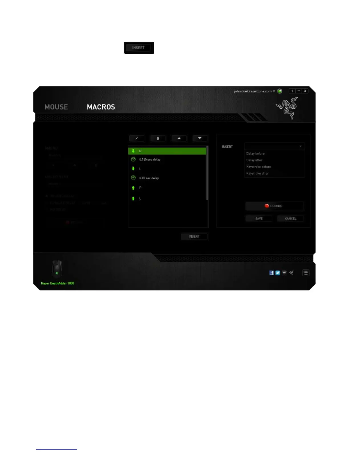a keystroke or a delay to be added in before or after the highlighted macro command.