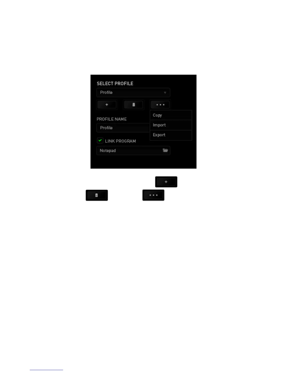 profile by clicking the button. The button allows you to Copy, Import,