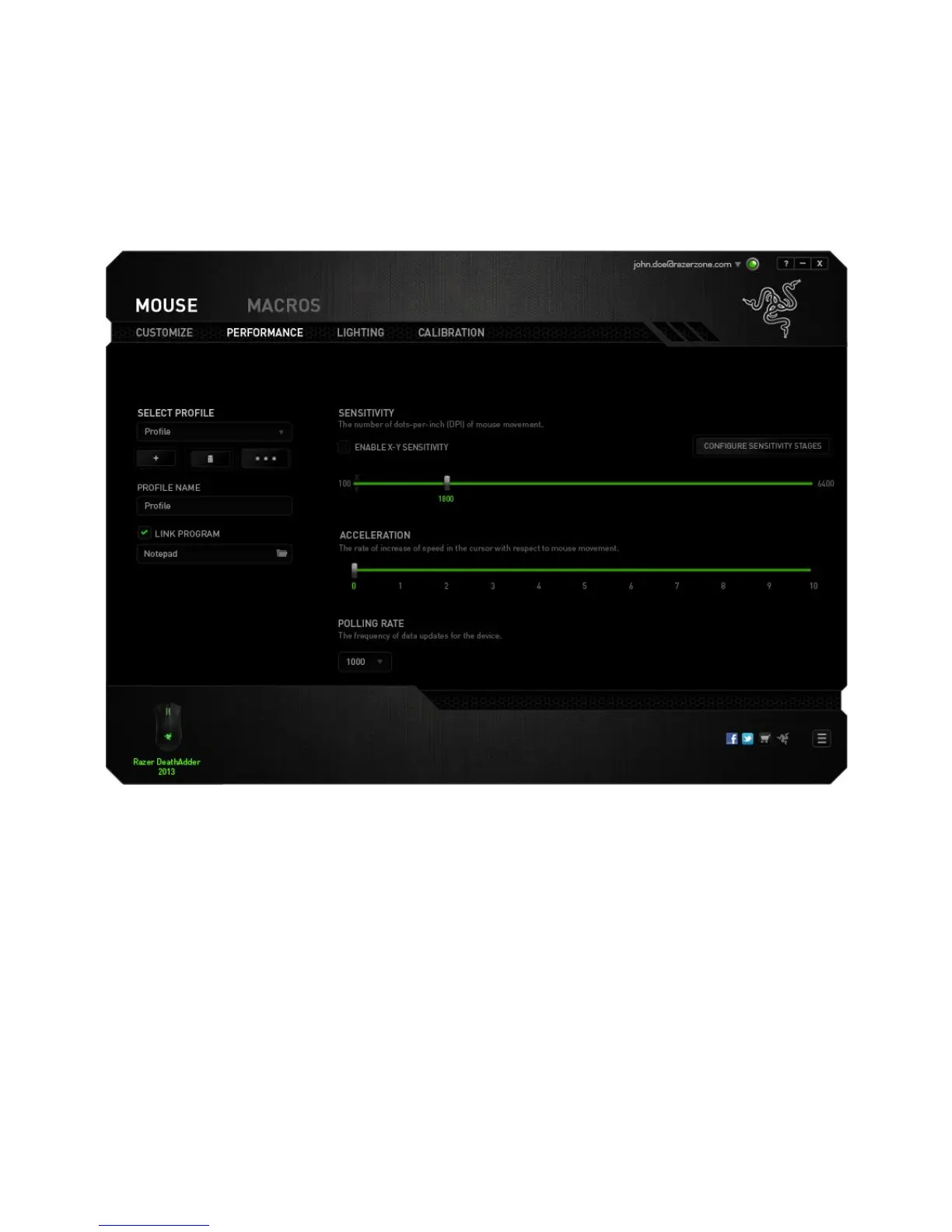 The Performance Tab allows you to enhance the speed and precision of your mouse