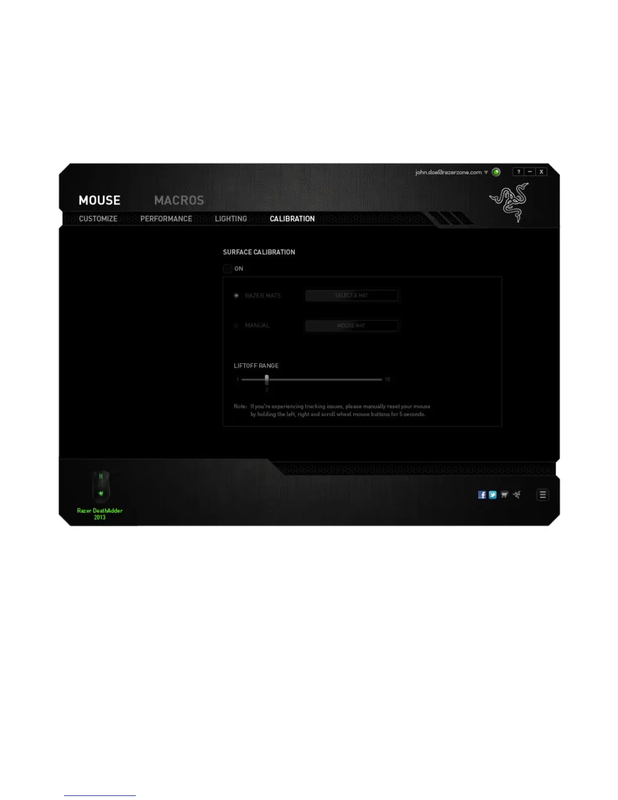 The Calibration Tab allows you to optimize your Razer Precision Sensor to any mousing