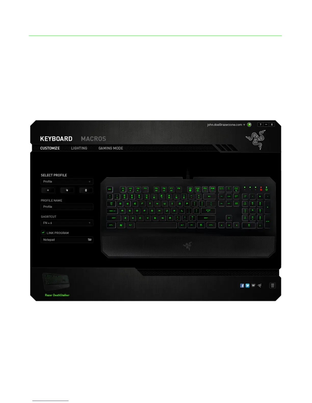 The Keyboard Tab is your default tab when you first install Razer Synapse 2.0. This tab