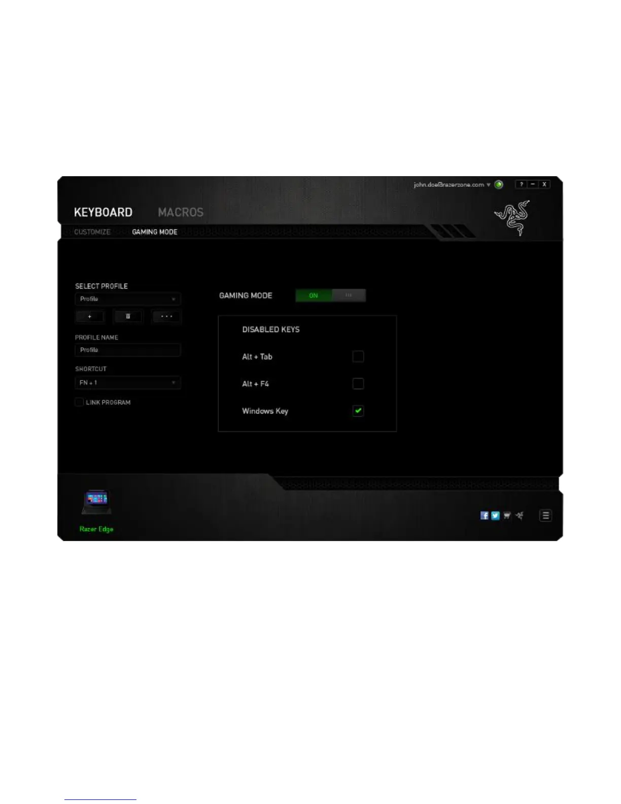 The Gaming Mode Tab allows you to customize which keys to disable when Gaming