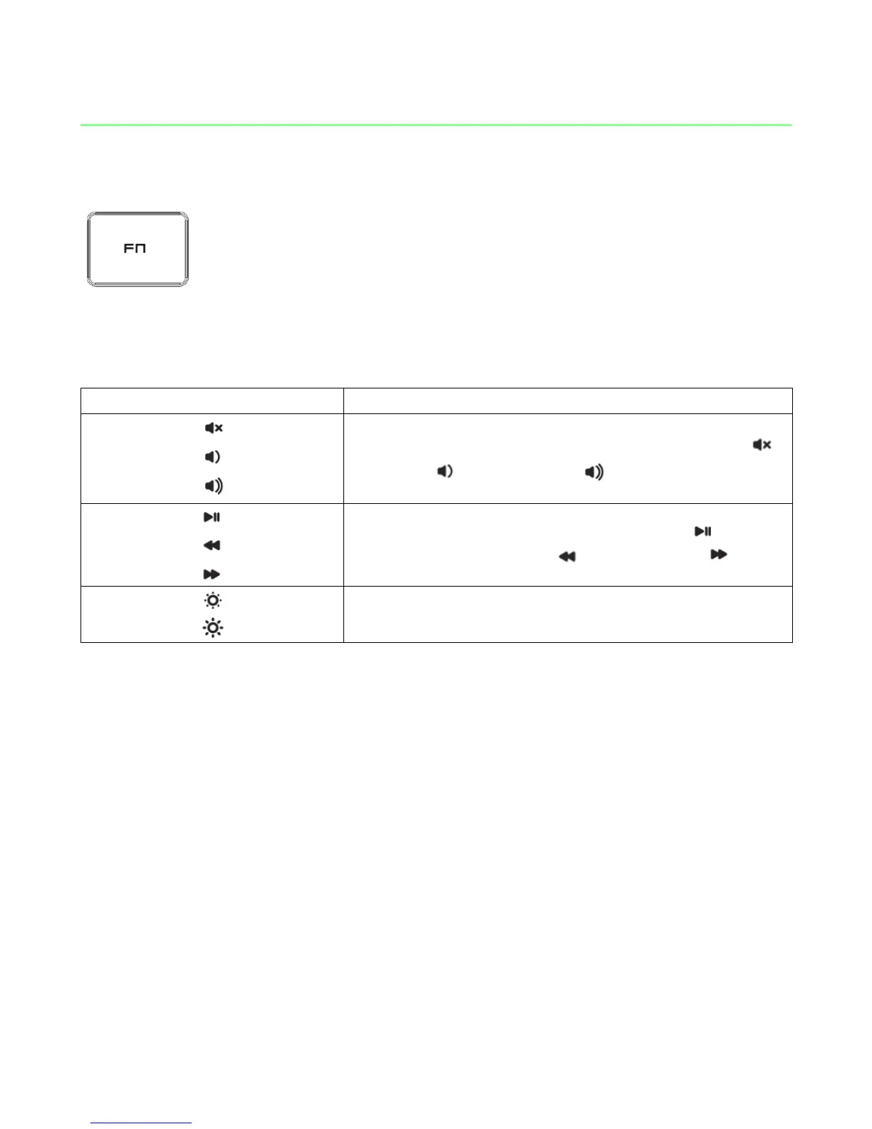 secondary features. Listed below are the function keys and their features’ descriptions.