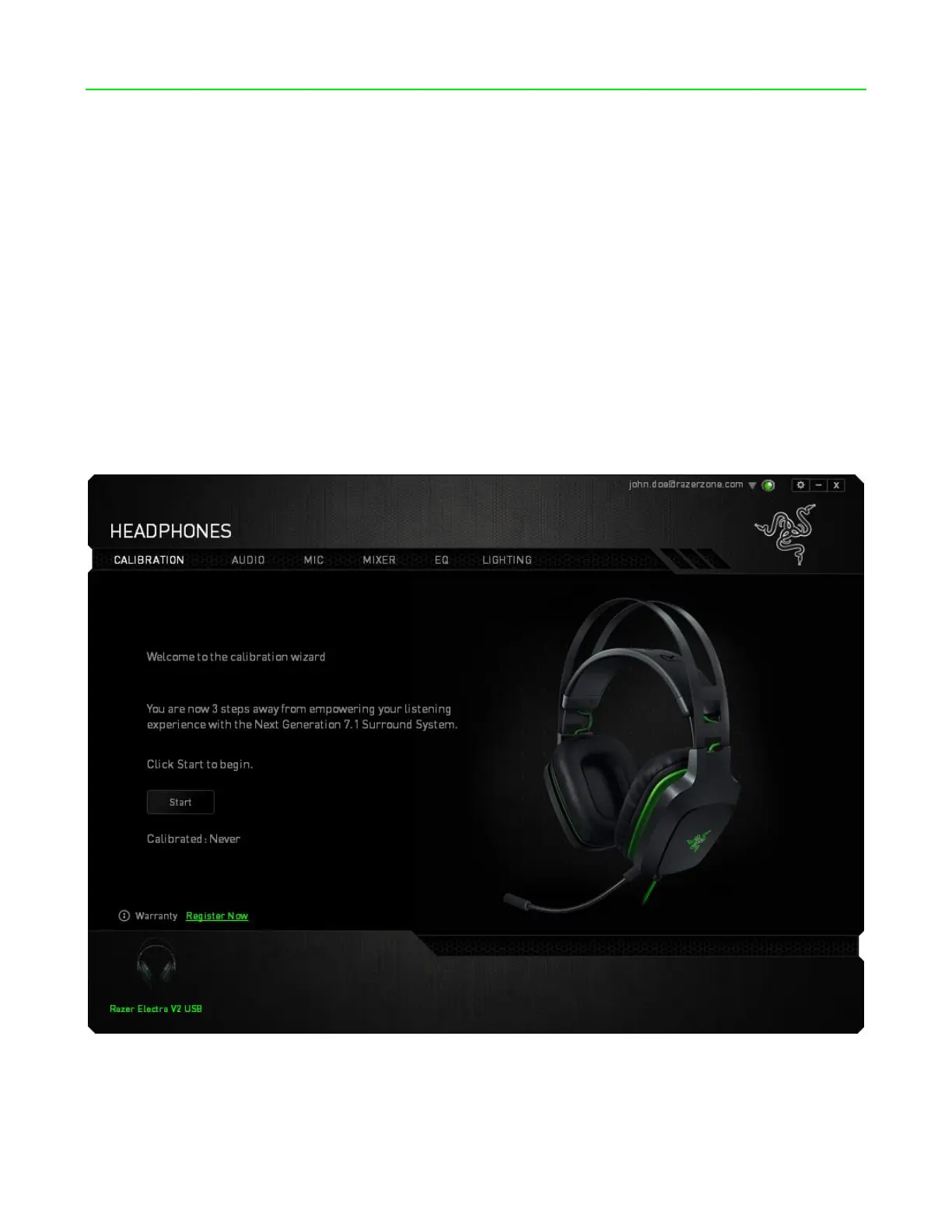 A 3-step calibration wizard helps you set up your Razer Electra V2 USB for virtual 7.1 surround sound.