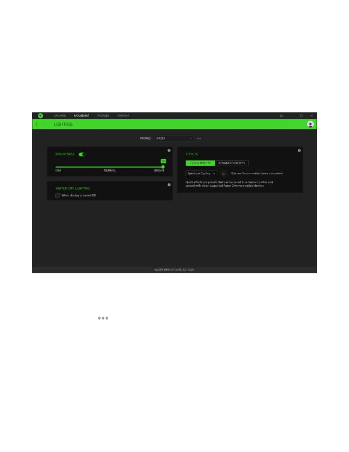 The Lighting subtab enables you to modify your Razer device’s profile and light settings.
