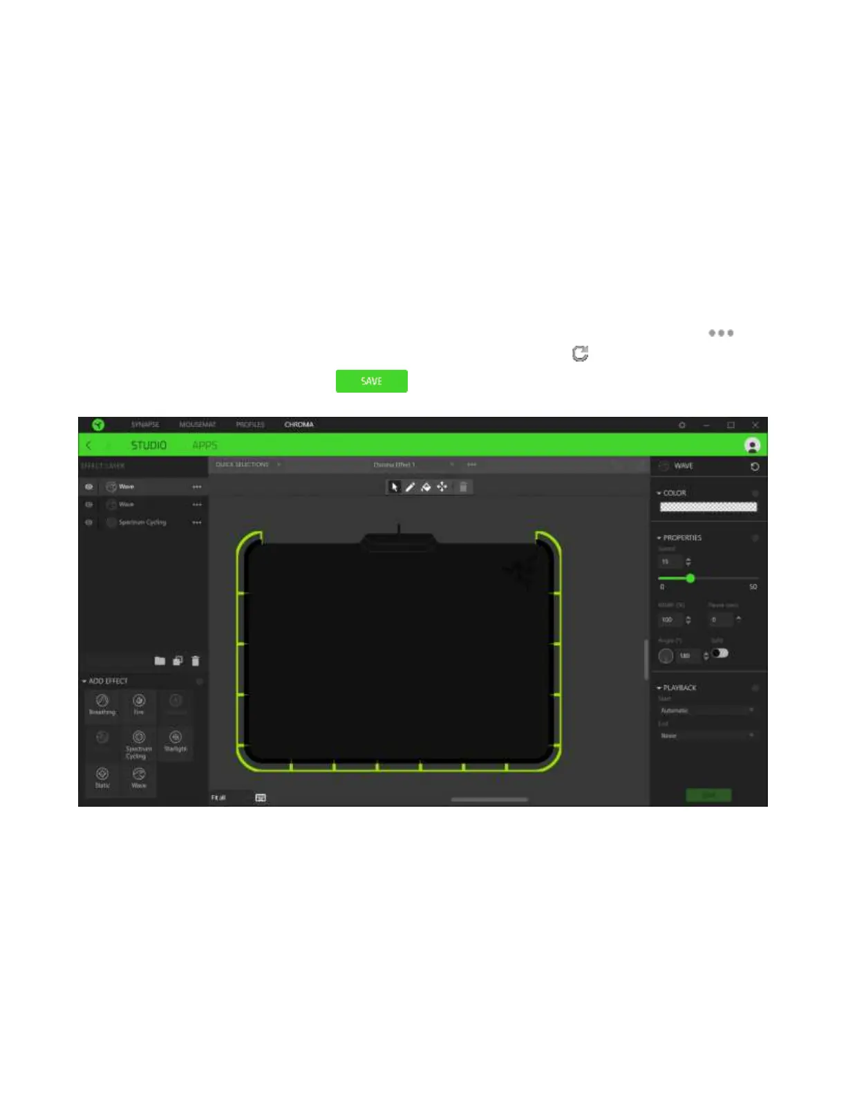 The Studio subtab enables you to create and edit your own Chroma Effects which you can apply to all