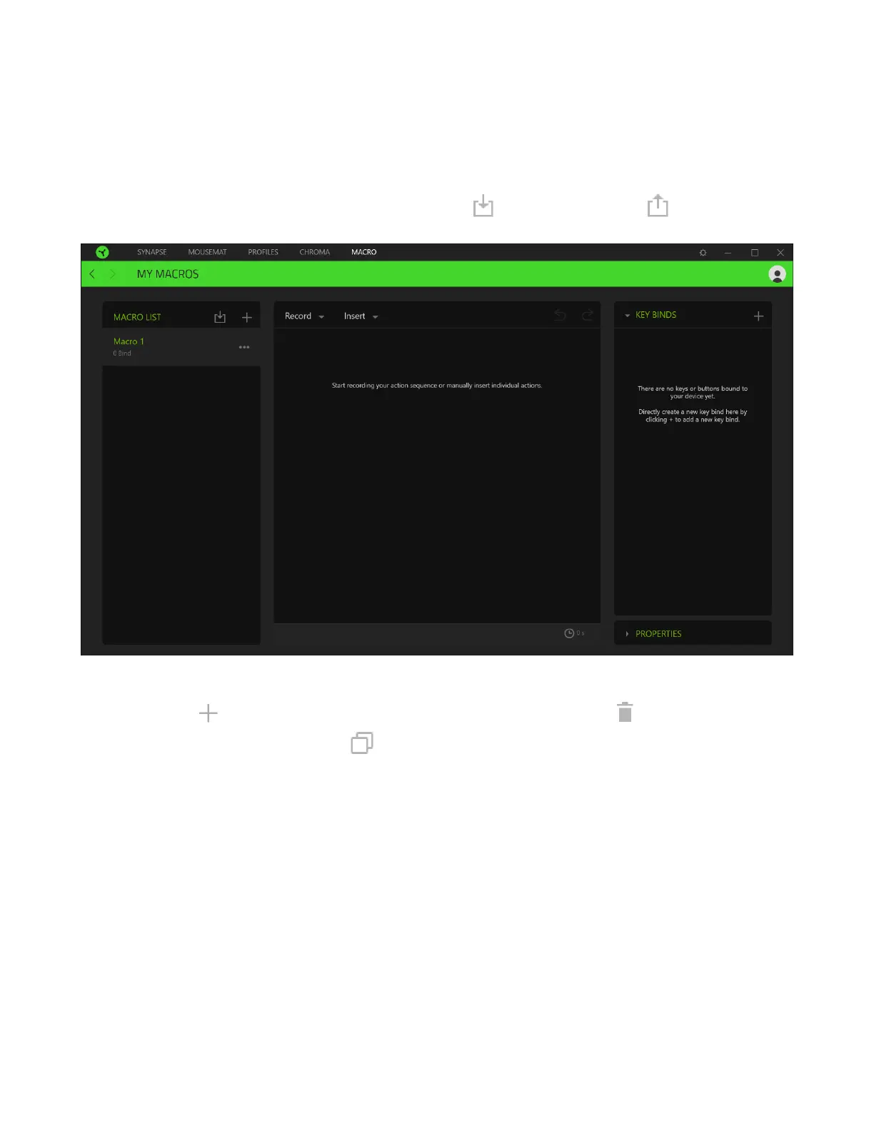 the add button ( ), delete the current macro by clicking the trash button ( ), and duplicate the