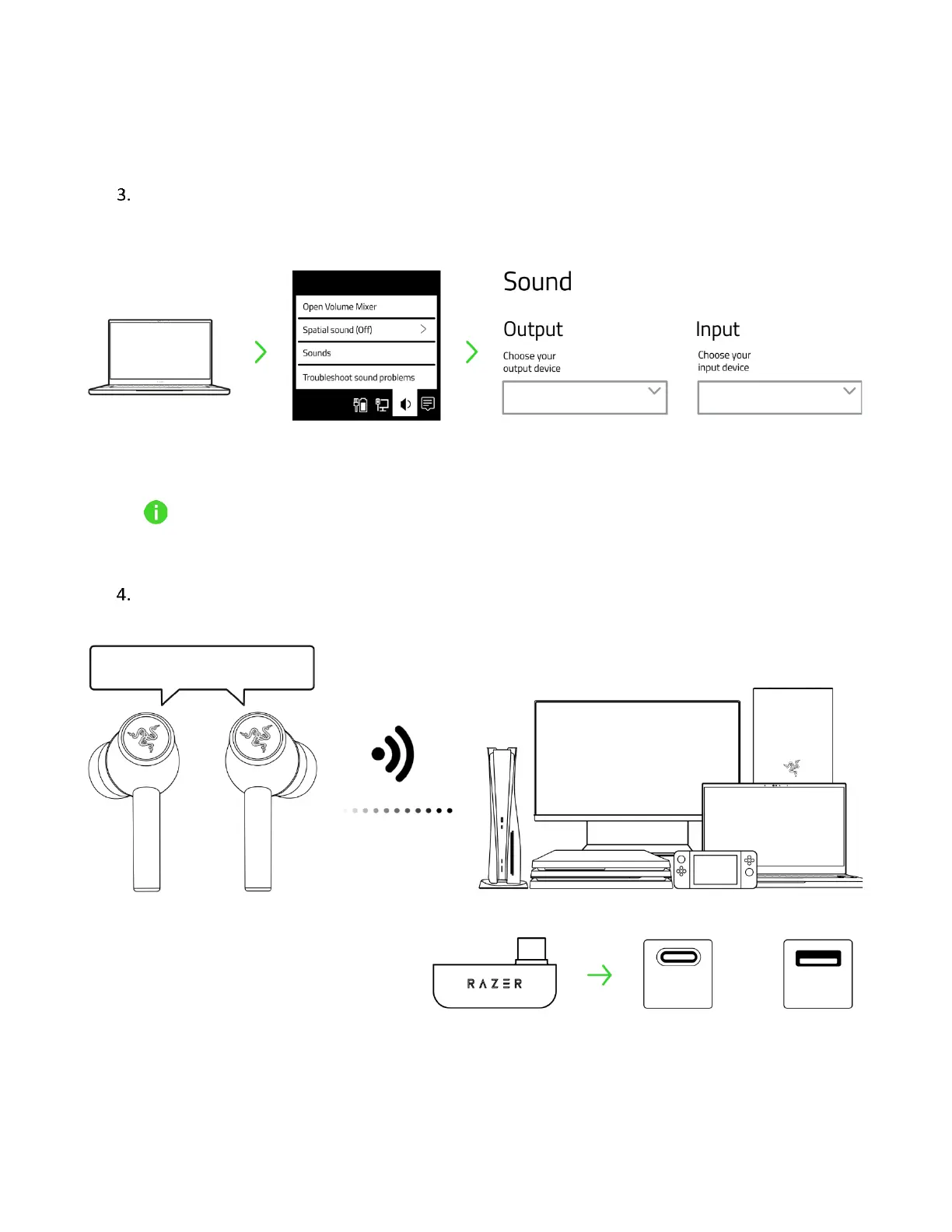 On your device (if applicable), set the Razer Hammerhead Pro HyperSpeed as the default Input