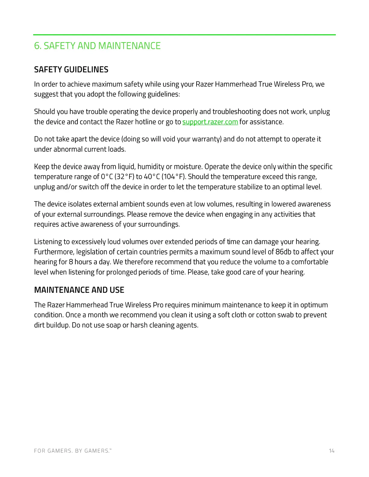 In order to achieve maximum safety while using your Razer Hammerhead True Wireless Pro, we