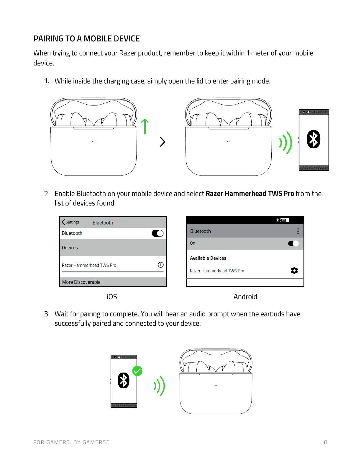 Enable Bluetooth on your mobile device and select Razer Hammerhead TWS Pro from the