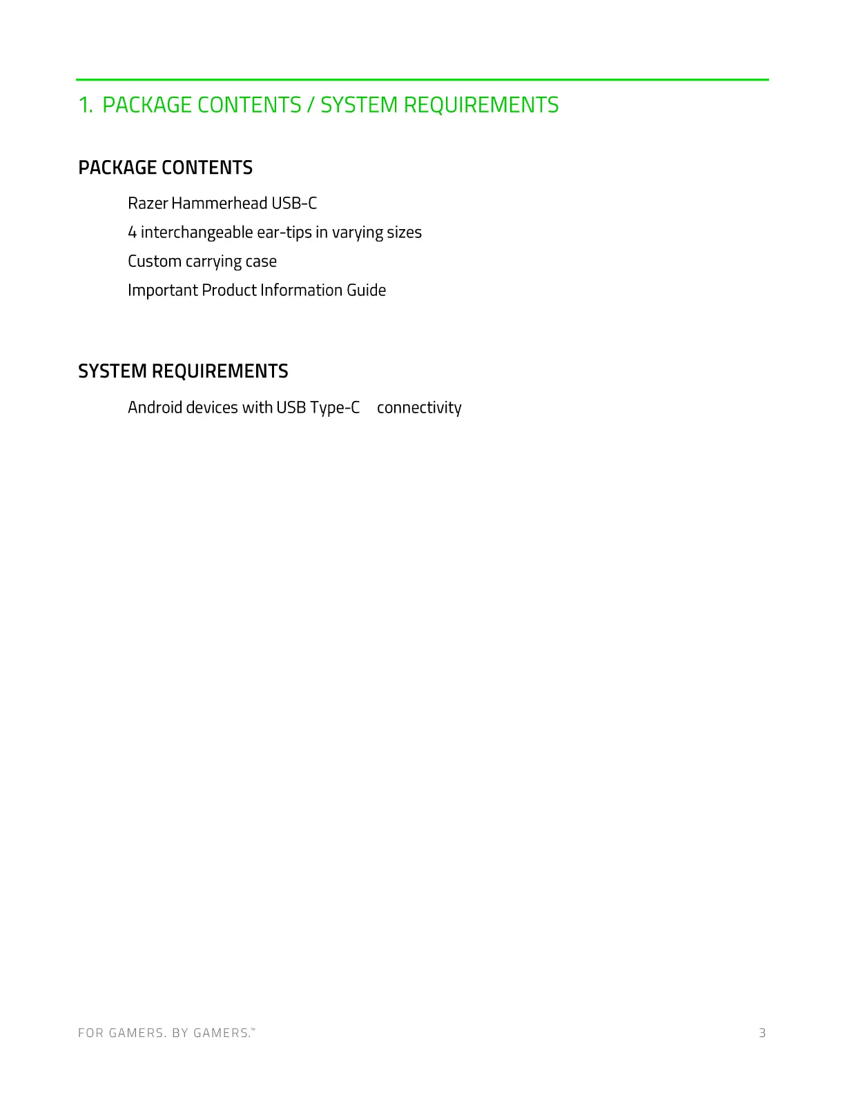 1. PACKAGE CONTENTS / SYSTEM REQUIREMENTS