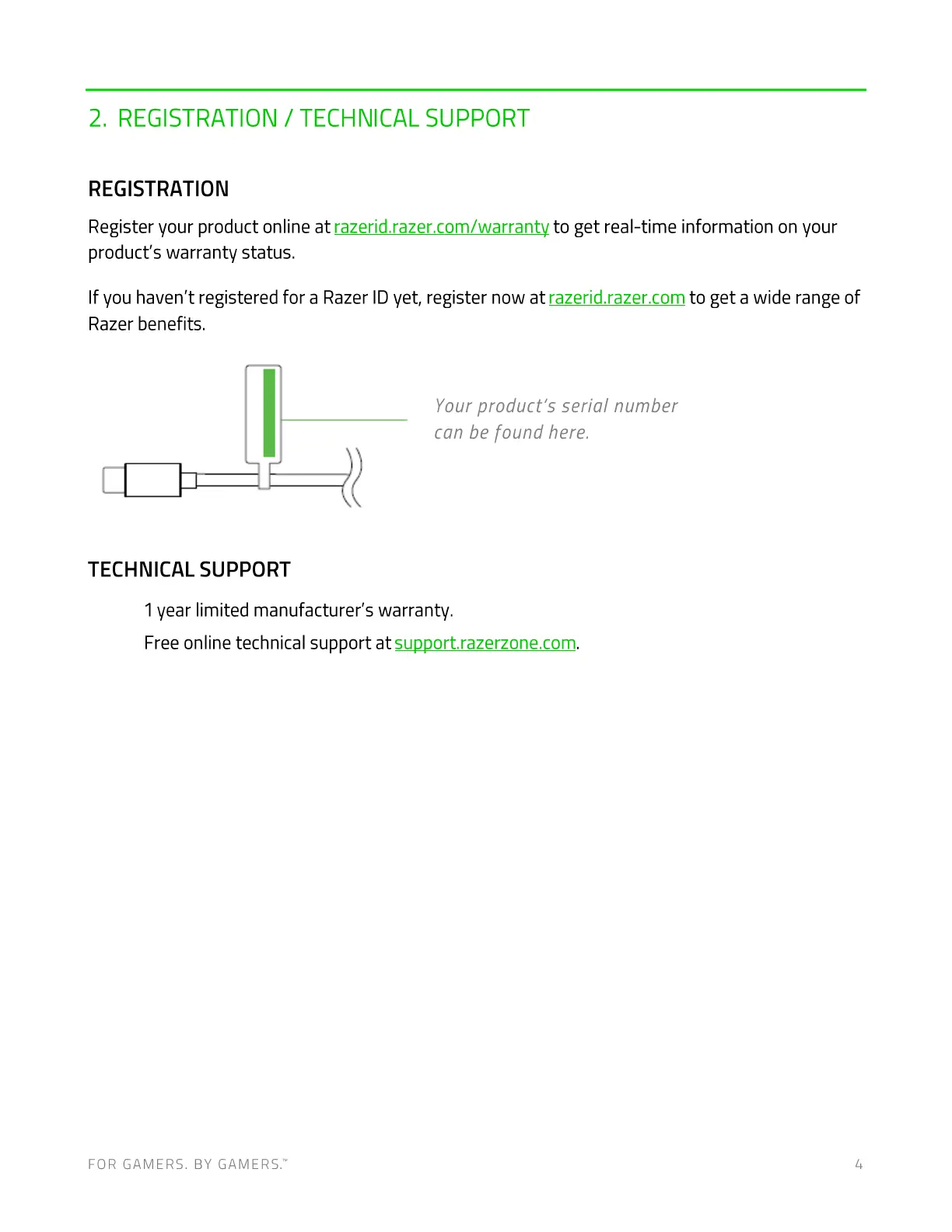 Register your product online at razerid.razerom/warranty to get real-time information on your