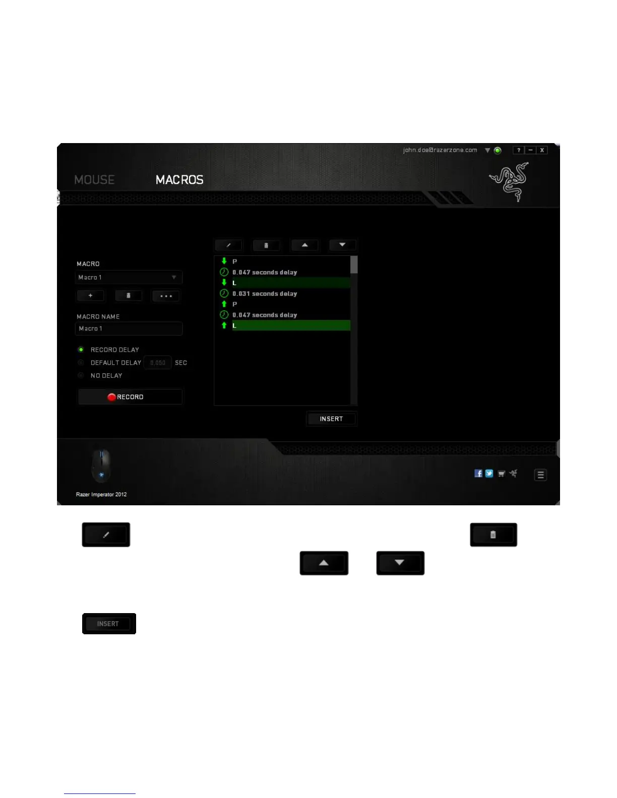 selecting each command on the macro screen. Each keystroke or button press is
