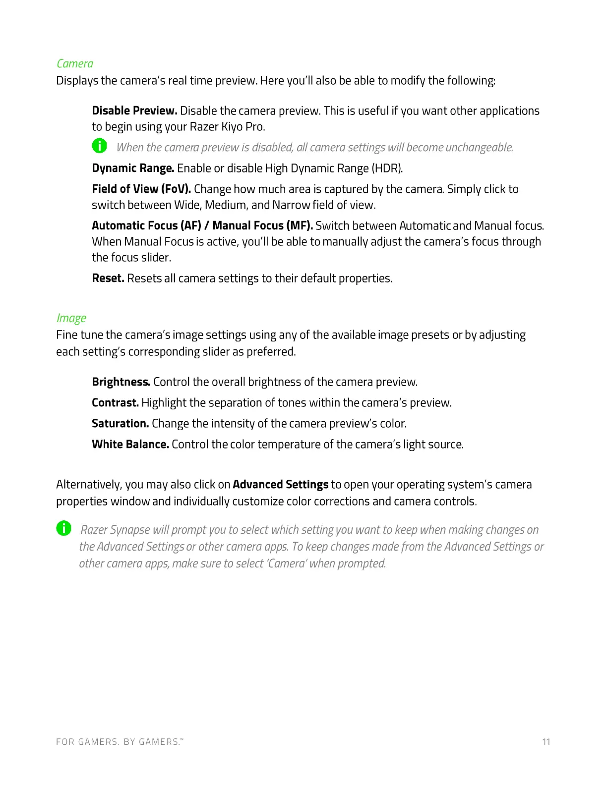 the Advanced Settings or other camera apps Tokeep changesmade from the Advanced Settings or