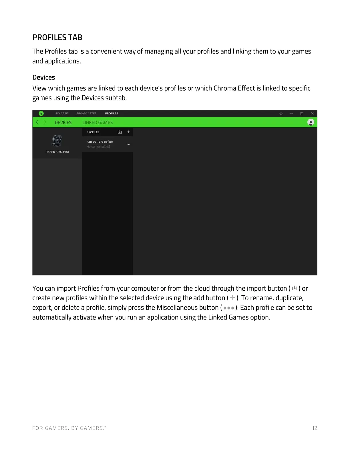 The Profiles tab is a convenient way of managing all your profiles and linking them to your games