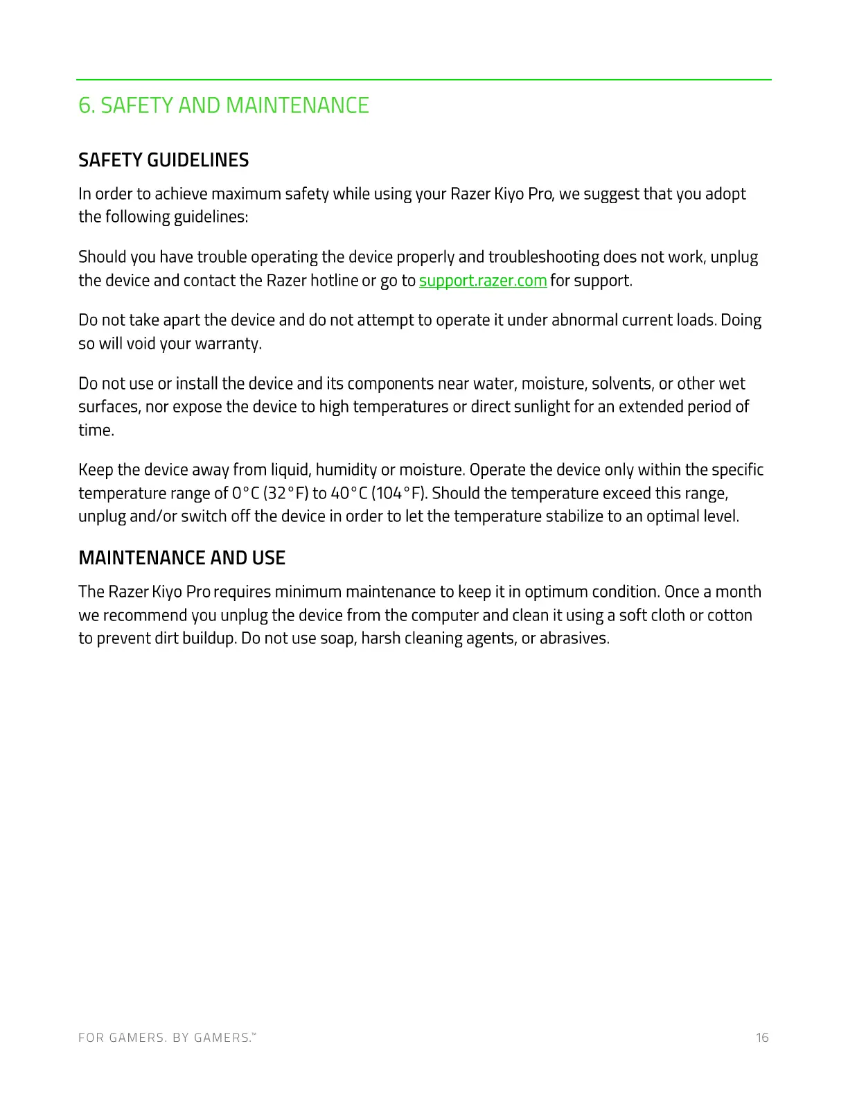 The Razer Kiyo Pro requires minimum maintenance to keep it in optimum condition. Once a month