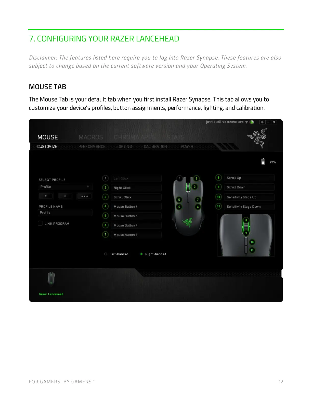 The Mouse Tab is your default tab when you first install Razer Synapse. This tab allows you to