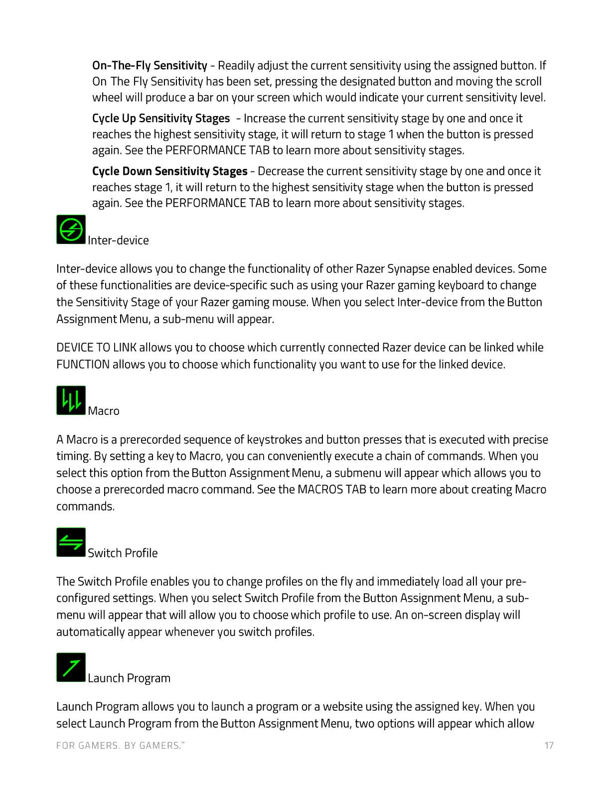 of these functionalities are device-specific such as using your Razer gaming keyboard to change