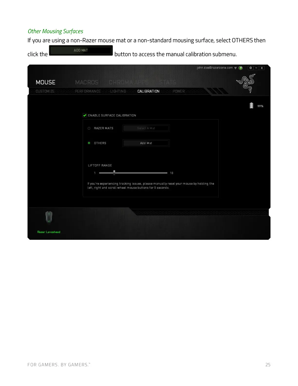 If you are using a non-Razer mouse mat or a non-standard mousing surface, select OTHERSthen