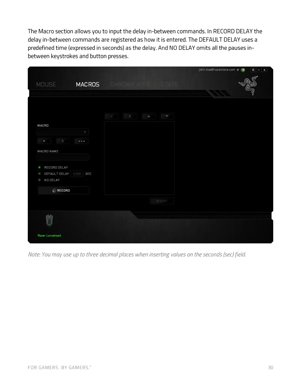 The Macro section allows you to input the delay in-between commands. In RECORDDELAYthe