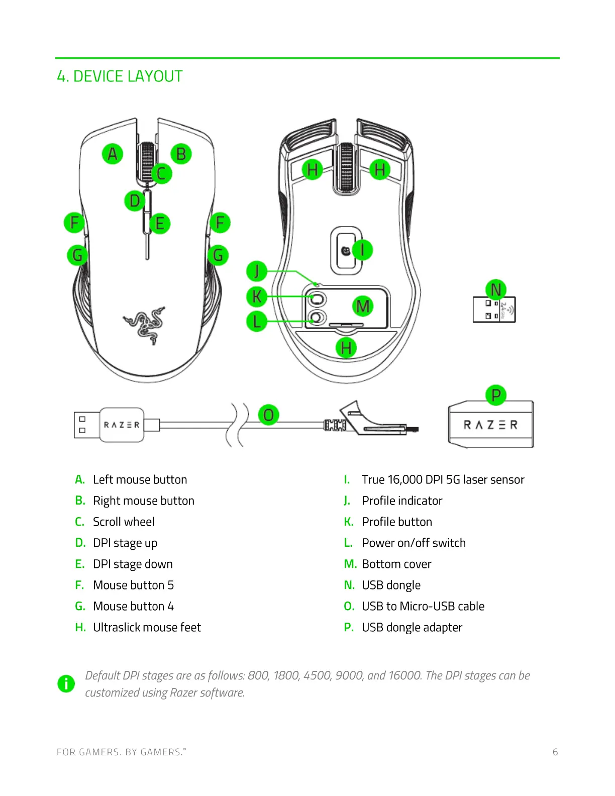 Default DPI stages are as follows: 800, 1800, 4500, 9000, and 16000. TheDPIstages can be